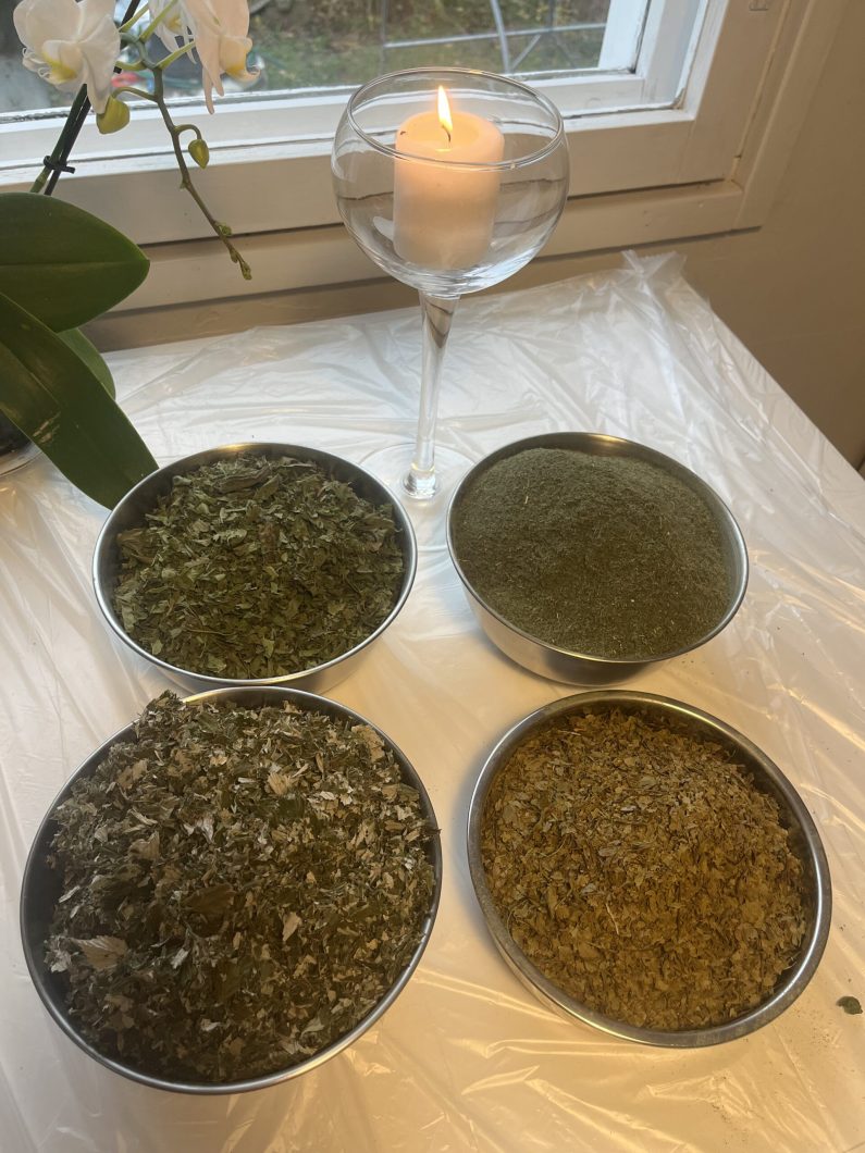 Kuivattuja ja jauhettuja luonnonvaraisia yrttejä, jotka on kerätty käsin puhtailta paikoilta. Keräyspaikkakunnat Lohja ja Posio.
